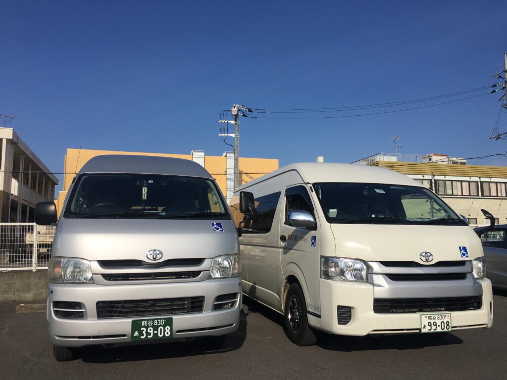 当社はハイエース2台体制で運行致しております。各支店も2台体制で配置されていますので合計6台での運行が可能となっております。イベントや修学旅行などにご利用いただけます。